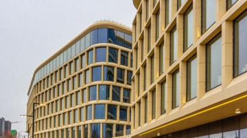 Он состоит из двух корпусов, объединенных лобби с атриумом.